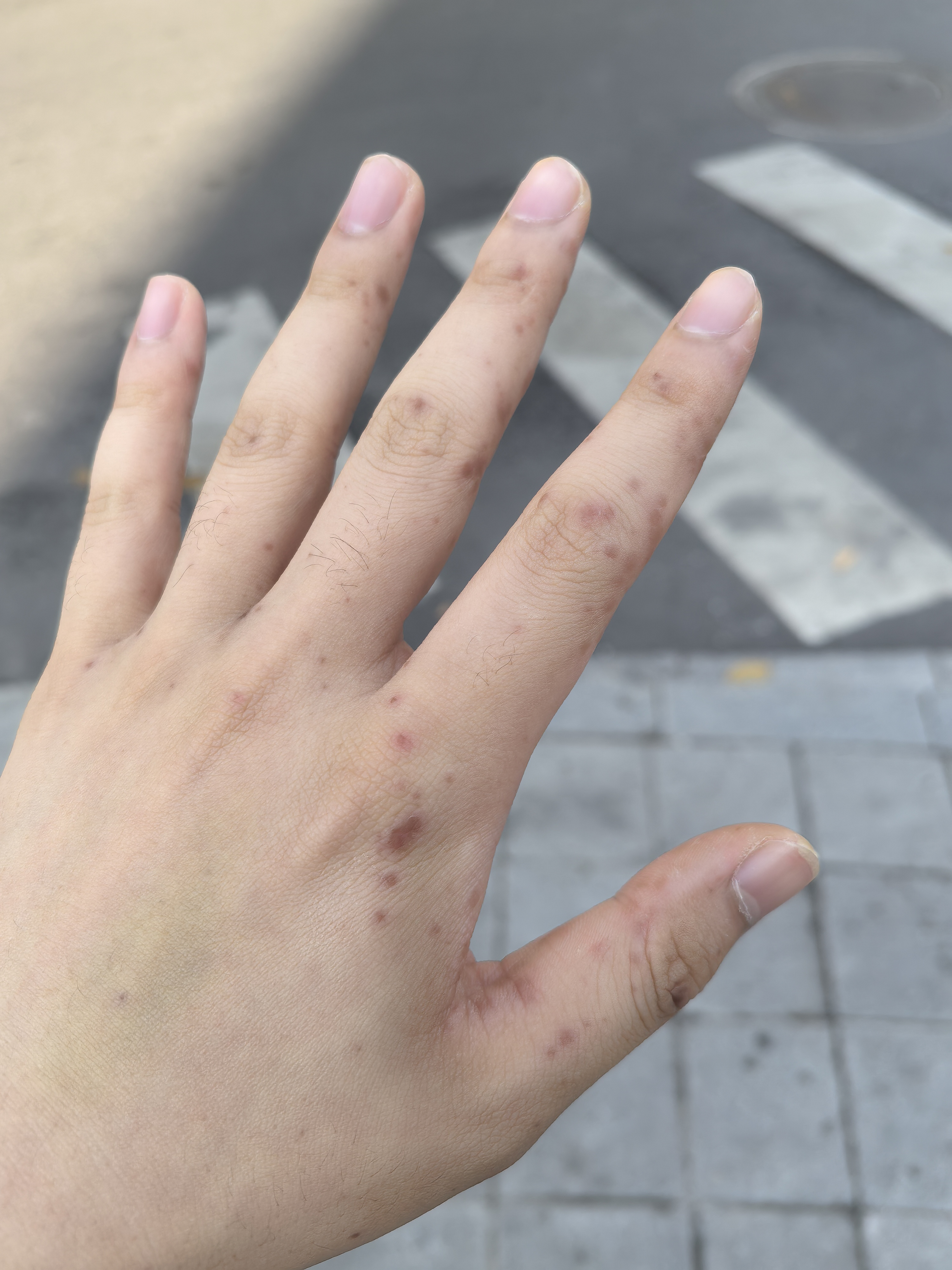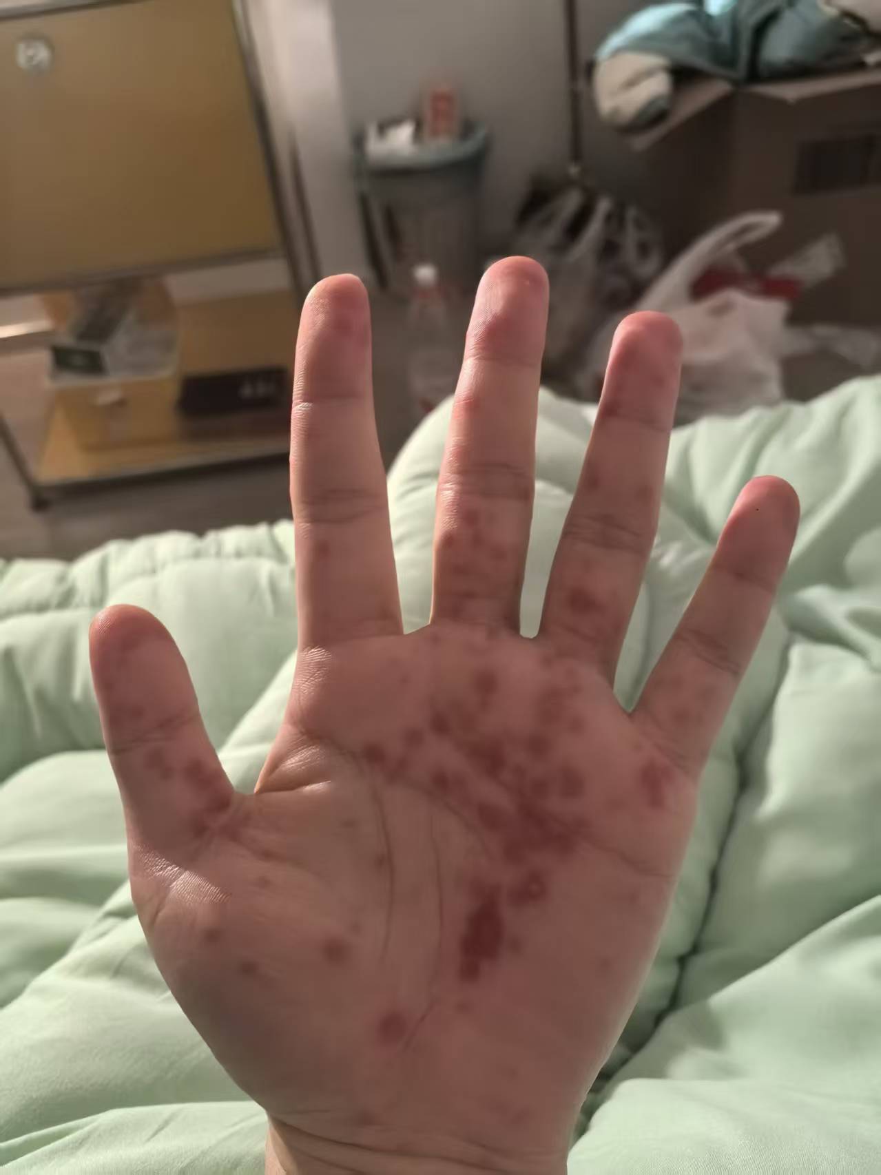 到了周六,手脚红疹开始大面积爆发,又疼又痒。