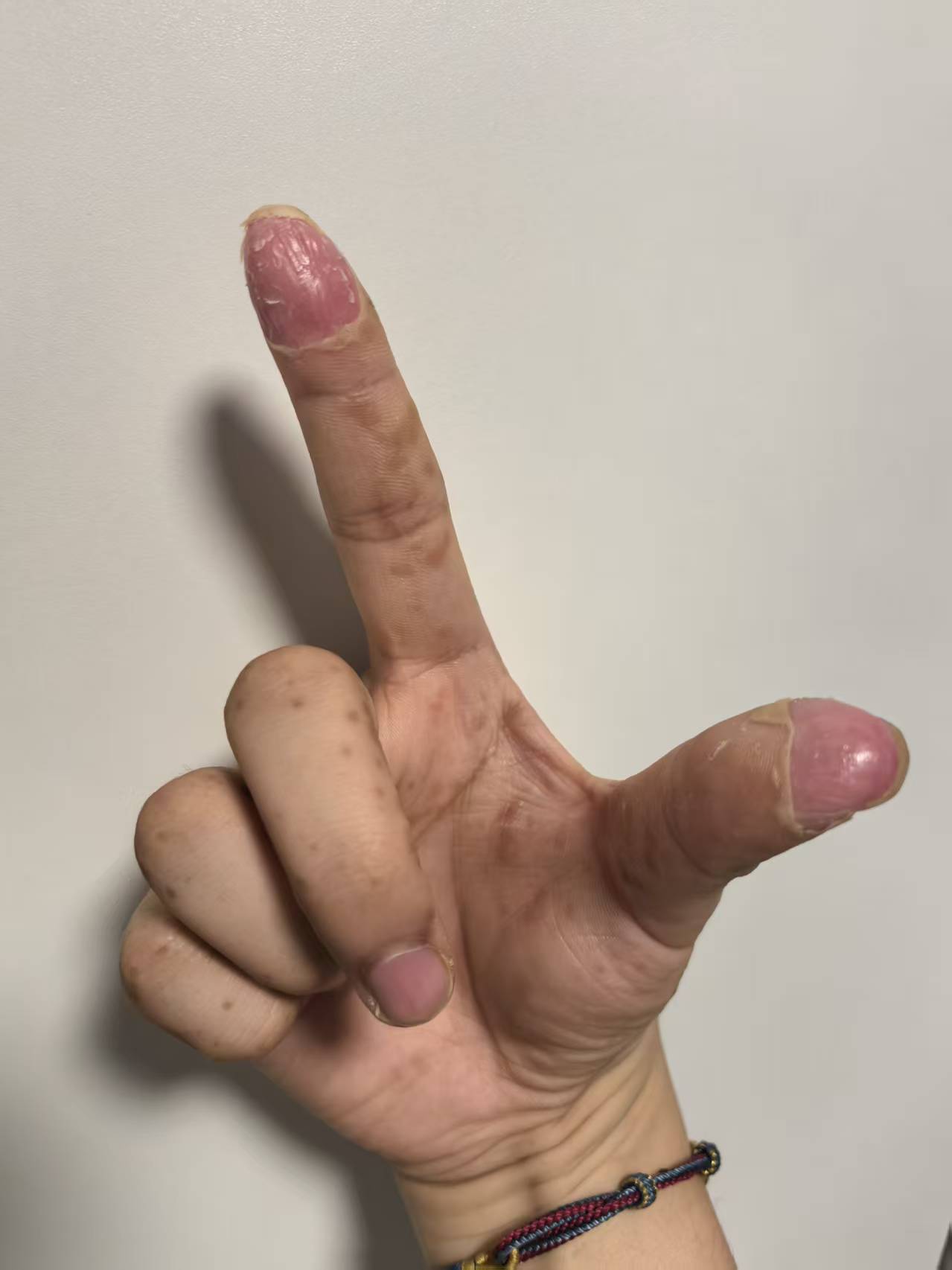 后来手上的结痂慢慢变硬,按照经验,再往后就要蜕皮了,事实证明也确实是蜕皮。